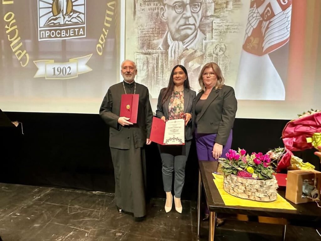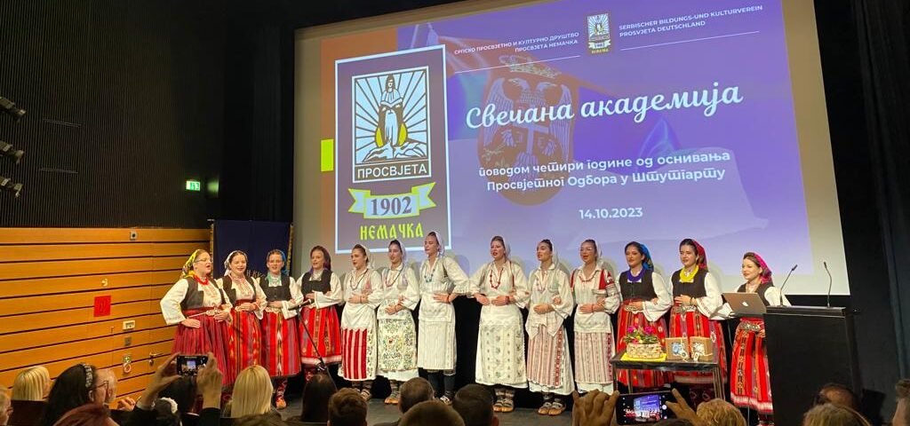 Драго нам је да нас на свим нашим окупљањима прате наша дјеца, као данас Аница Кочић која је од самог оснивања у Просвјети. Њу подучава наша чланица, професорица пјевања г. Гергана Ана Стевановић. – Са мојим доласком на позицију предсједнице Просвјете тежиште интересовања и подршке још више смо усмјерили на младе нараштаје, на породицу, на омладину. На младе људе као што је Аница или наш члан Бранимир Стојичић који је изузетан музички таленат, који свира више од три инструмента а управо је кренуо и на правни факултет. То су наши будући просвјетари и будући чланови српске заједнице у Штутгарту.